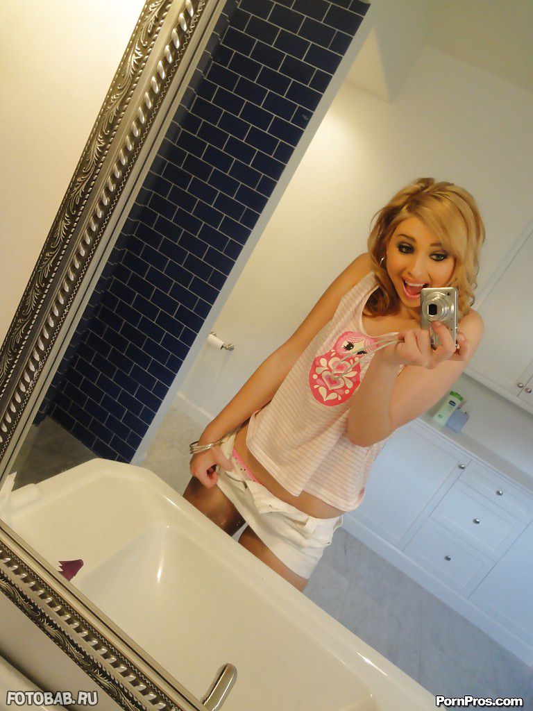 Голое селфи перед зеркалом стройной блондиночки (12 фото)