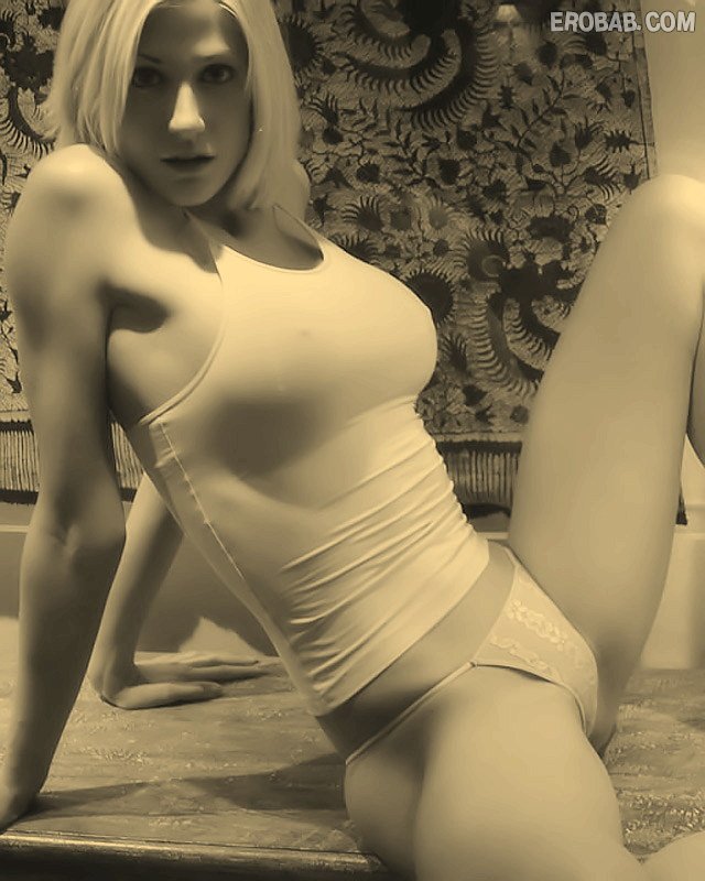Худая блондинка в футболке обтягивающую грудь (12 фото)