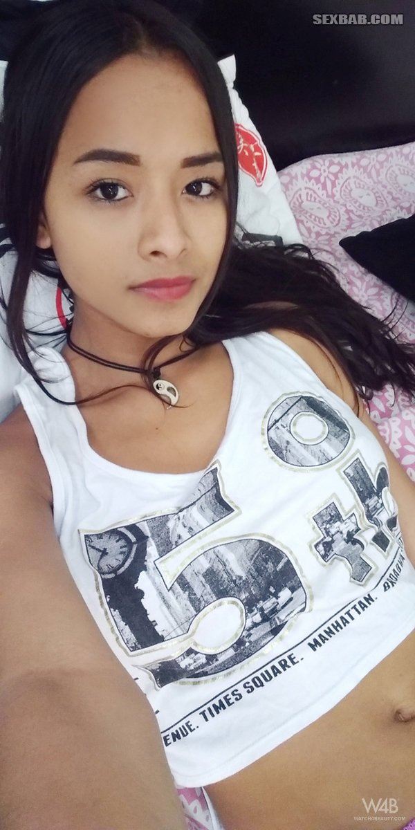 Смугленькая девушка Лилу делает селфи полностью обнаженной (15 фото)
