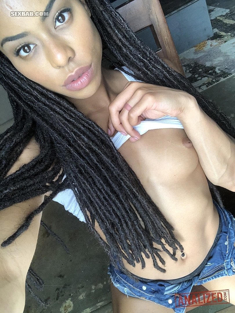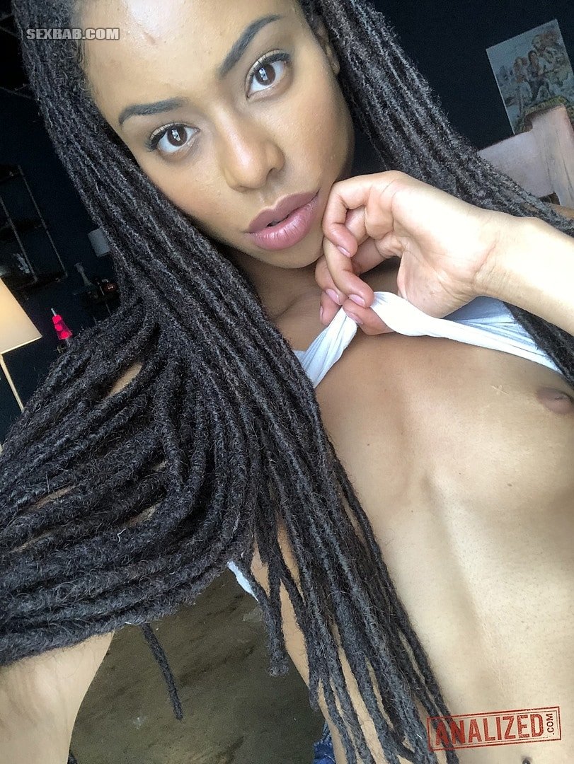 Красивая негритянка Кира Ноир показывает свою горячую задницу и небольшие сиськи в соло (17 фото)