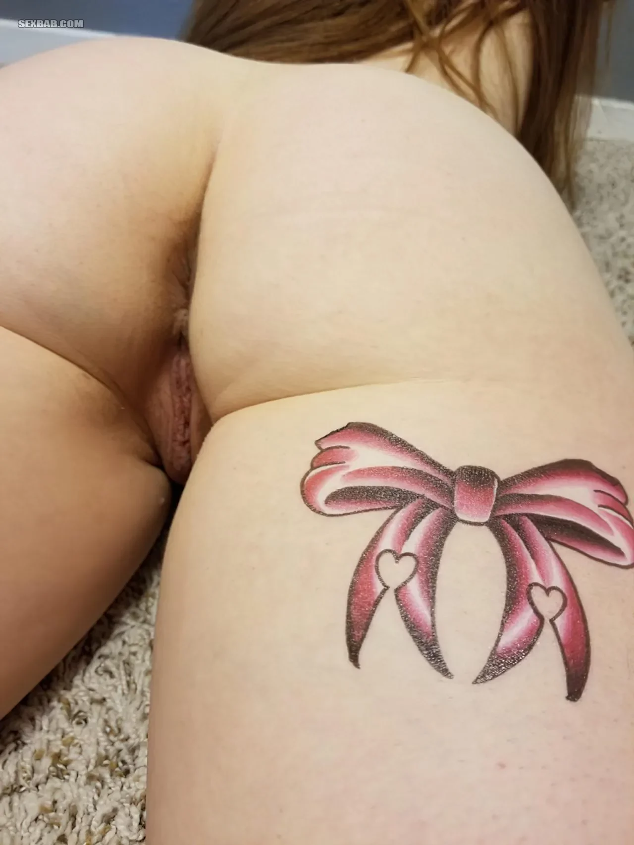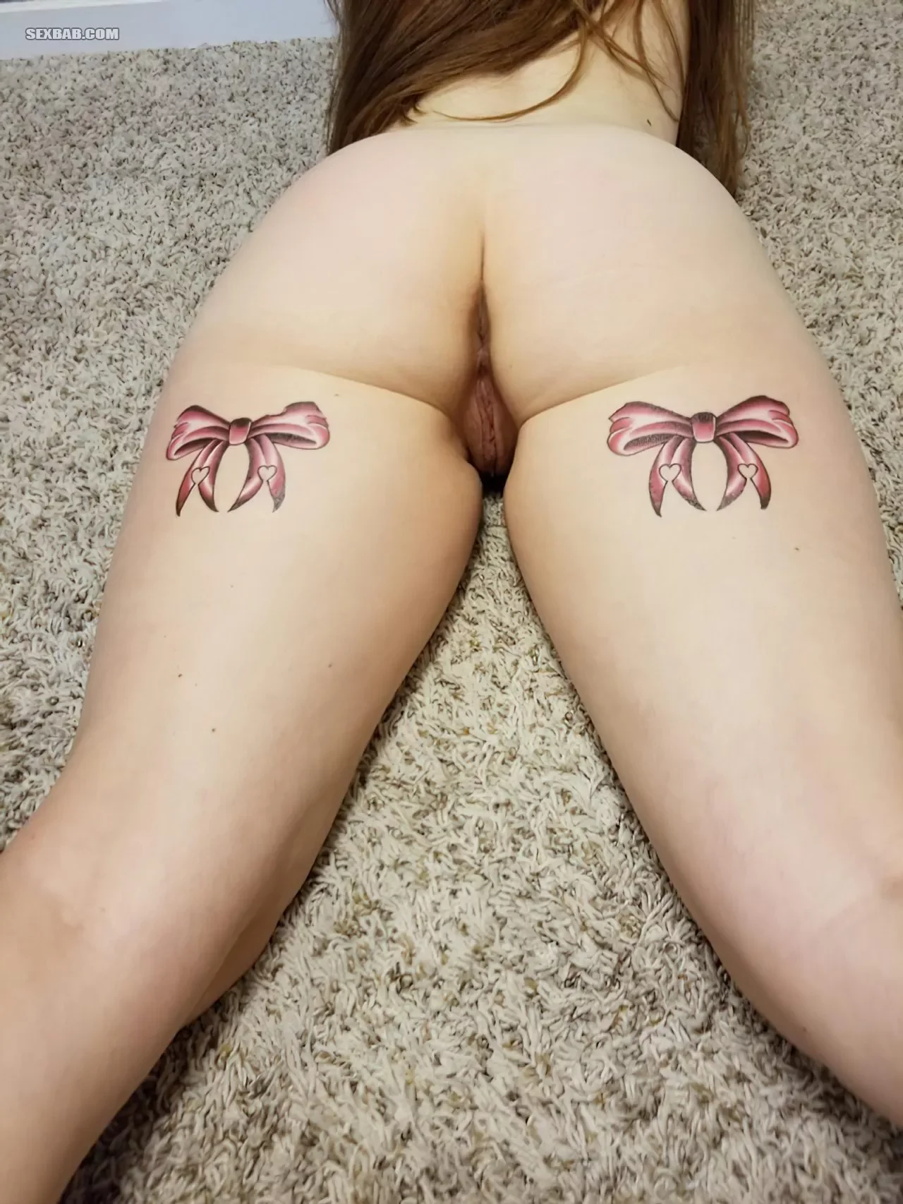 Охренительная попка молодой девушки с татуировками на ляжках (10 фото)