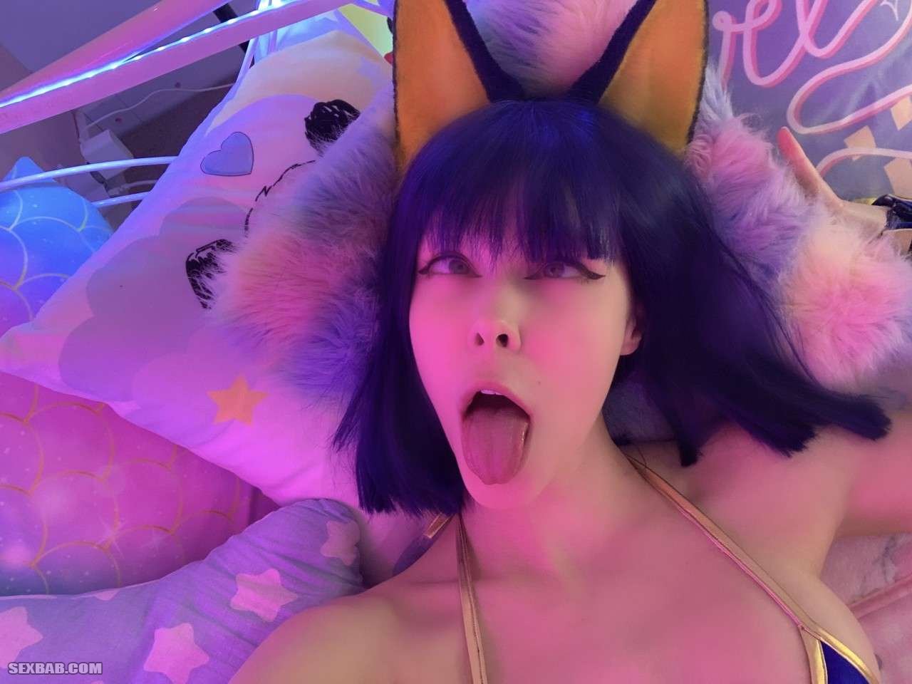 Голая милашка (LittleKitty69) с ушками на голове делает селфи в страстных позах (20 фото)