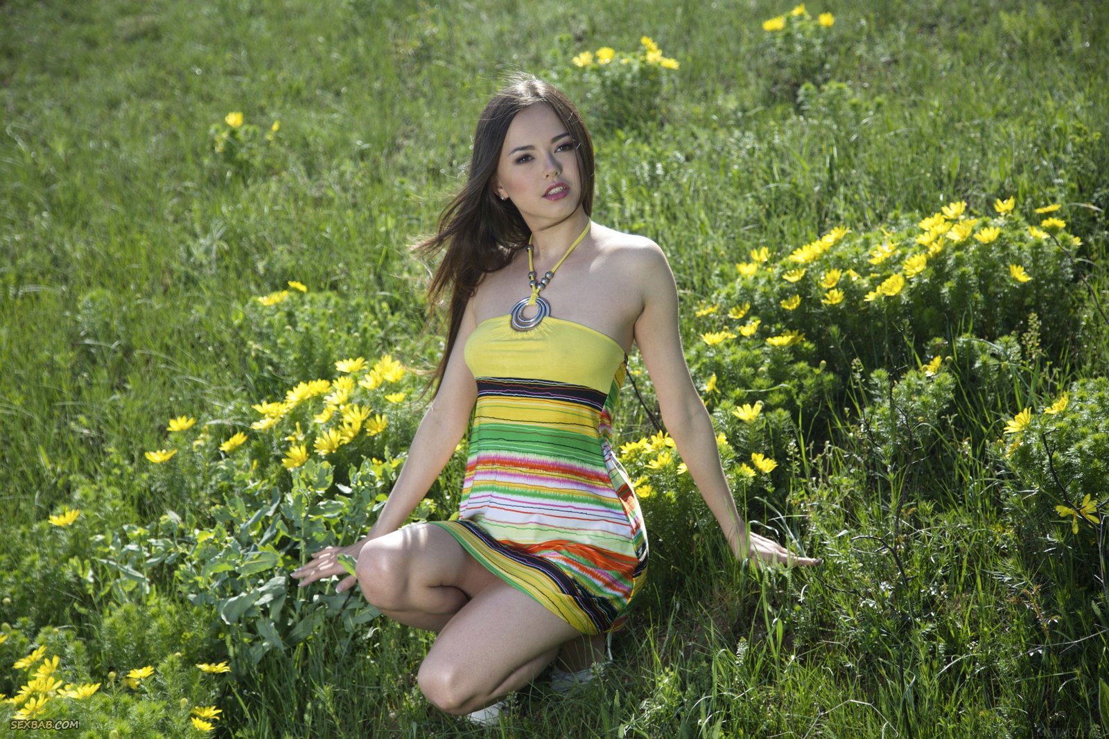 Описание: Гуляя в поле одна и быстро сняв с себя короткое платье без трусов, голая детка с натуральными упругими сиськами игриво вертит своей аппетитной попкой перед камерой. Страстно лаская руками свою нежную гладкую кожу, разгоряченная телочка опускается перед нами на землю и в самых возбуждающих позах принимается хвастаться своей бритой мясистой пиздой между ног.