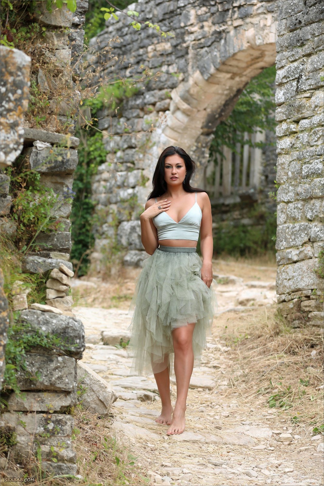 Описание: Кокетливо задирая перед камерой свою пышную юбку, загорелая сексуальная брюнетка без трусов с удовольствием оголила свою нежную упругую попу. Затем с выставленными на показ миниатюрными титечками горячая чертовка соблазнительно задирает свои стройные ножки и с разных интригующих ракурсов засвечивает перед нами гладкую нежную киску.