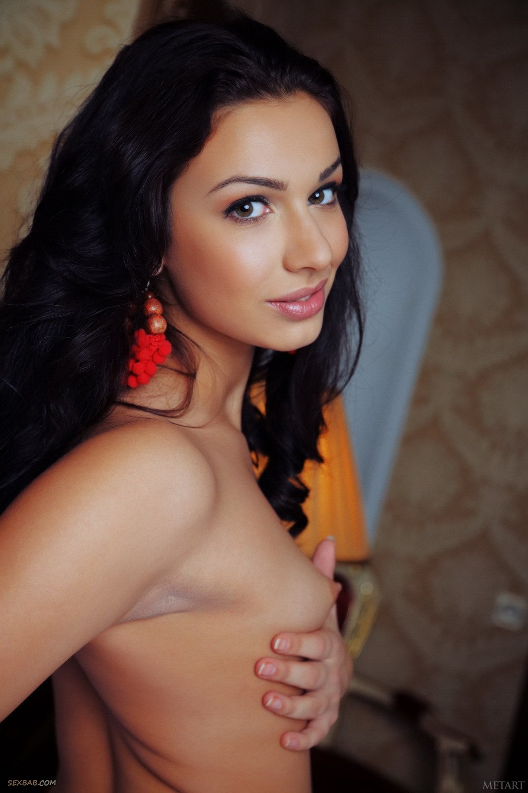 Жгучая брюнетка оголила маленькие титьки