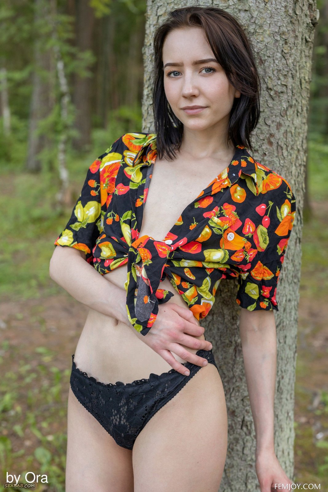 Описание: Чувственно извиваясь всем телом о ствол дерева и постепенно снимая перед камерой всю одежду, бледная длинноногая худышка с маленькими титьками опустилась голышом на землю и крупным планом показала нам свою бритую сочную пизду с мясистыми половыми губами.