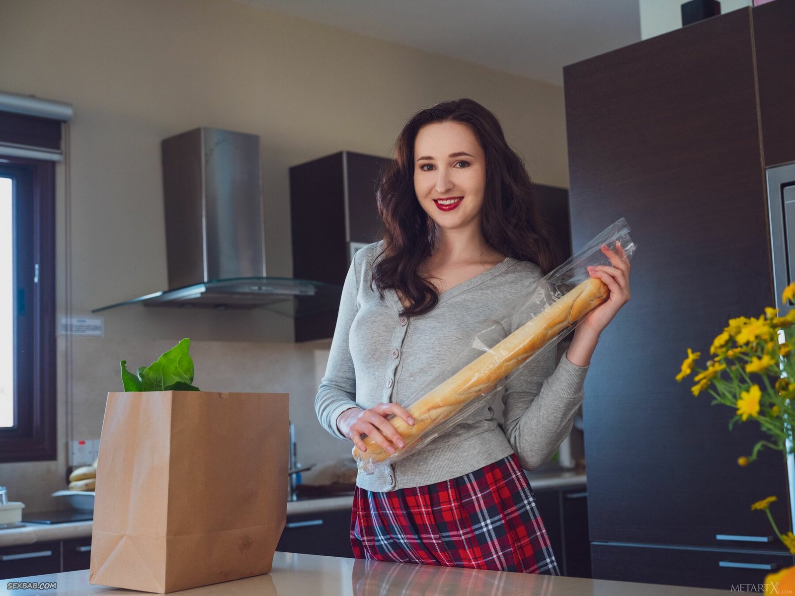 Описание: Придя домой из магазина, молоденькая домохозяйка с голыми упругими сиськами возбуждающе медленно разделась до гола на кухне. Игриво забравшись на столешницу и развратно позируя на ней голышом, бесстыжая телка широко раздвигает перед камерой длинные ноги в чулках и крупным планом засвечивает свою бритую сочную пиздёнку.