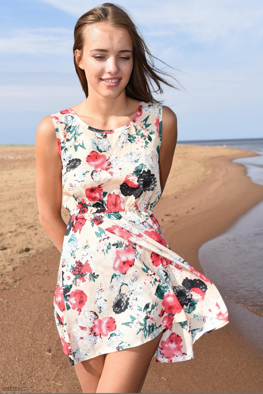 Описание: Прогуливаясь по пустому песчаному пляжу, симпатичная девица без трусиков игриво сняла с себя короткое платье и принялась охотно демонстрировать на камеру свои выдающиеся прелести. Нежась под лучами палящего солнца, голенькая детка с натуральными упругими сиськами с разных ракурсов бесстыже светит своей бритой нежной писечкой.