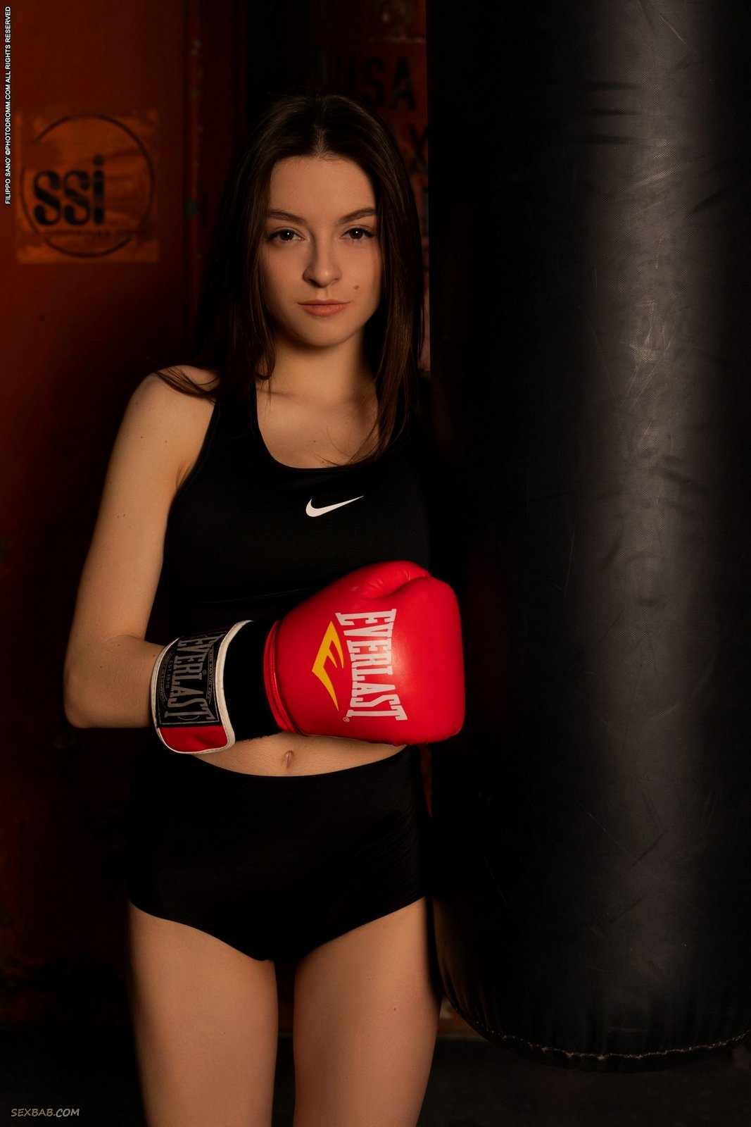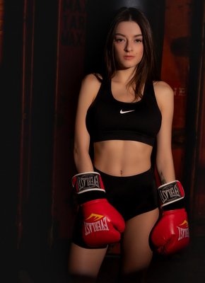 Описание: После выматывающего жесткого боя, потная спортсменка в боксерских перчатках высоко задрала свою обтягивающую майку и полностью оголила большие красивые буфера. Медленно раздевшись до гола, сексуальная горячая красотка с шикарными формами безумно эротично изгибается перед камерой, засвечивая свою аппетитную попу с гладкой писей.