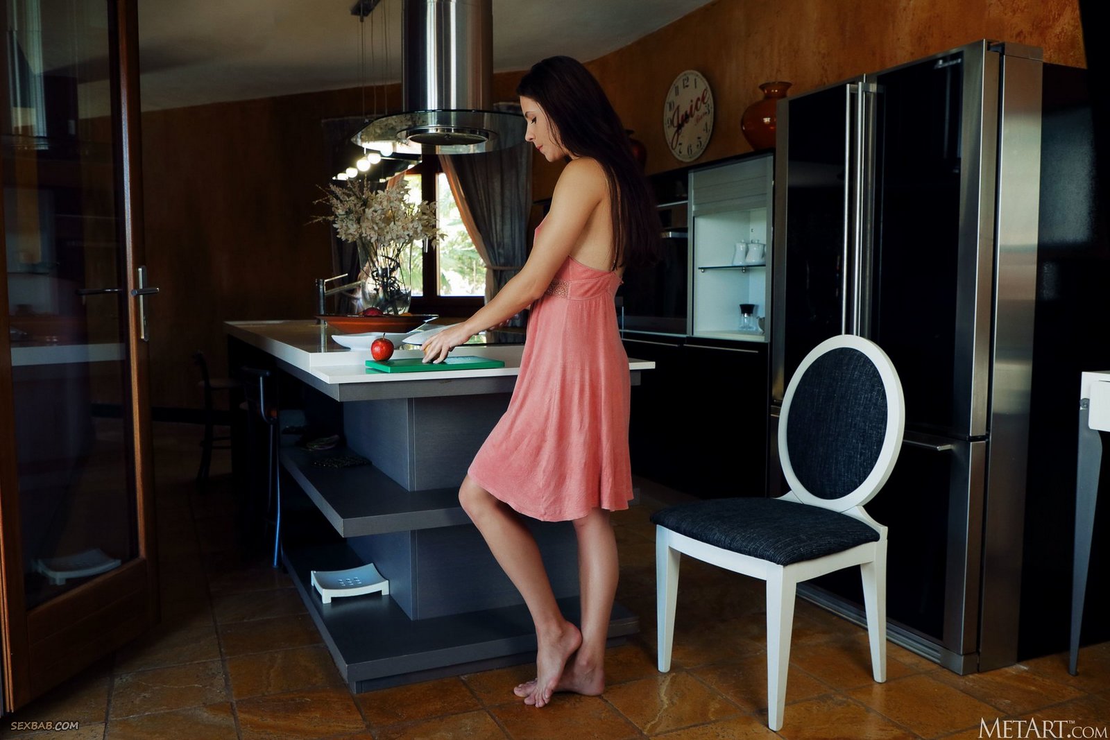 Описание: Закончив готовить еду, сексуальная домохозяйка соблазнительно играется перед камерой со своим легким платье без белья и эротично разделась до гола на большой кухне. Высоко задирая на стол свои длинные ноги, голая брюнетка с красивыми упругими сиськами развратно выпячивает крупным планом аппетитную жопку и возбуждающе играется со своей бритой нежной киской.
