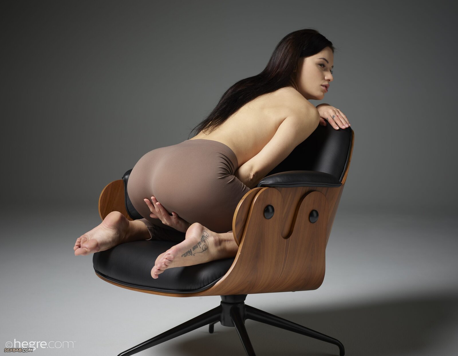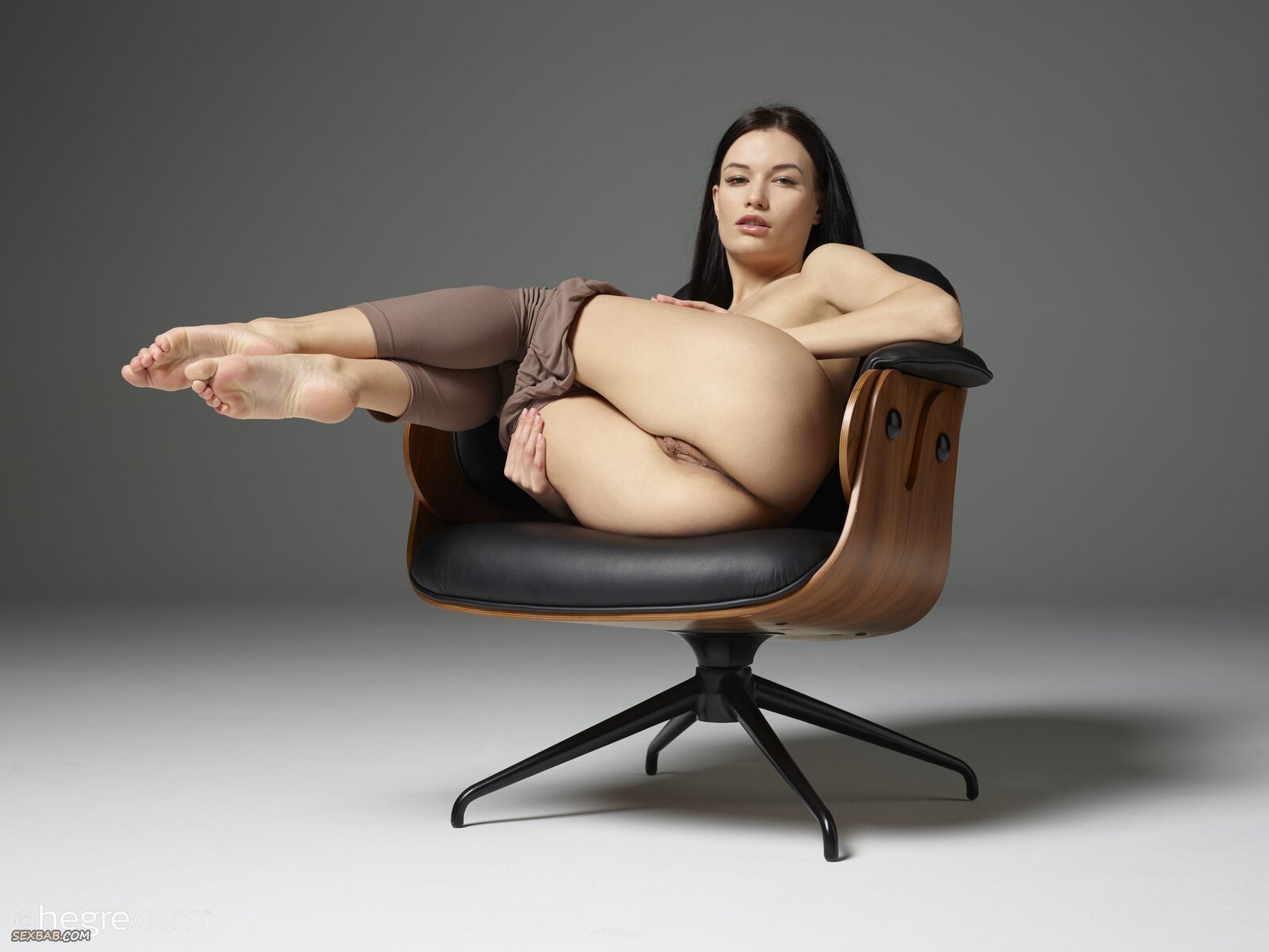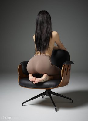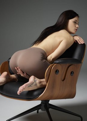 Описание: Расслабленно устроившись в большом стуле, развратная брюнетка с голыми плоскими титьками медленно сняла с себя обтягивающие штаны. Выставив на показ свои нежные острые сосочки, обнаженная девица без стеснения раздвинула ноги, а потом соблазнительно выпятила голую попку, засветила свою бритую пухлую киску.