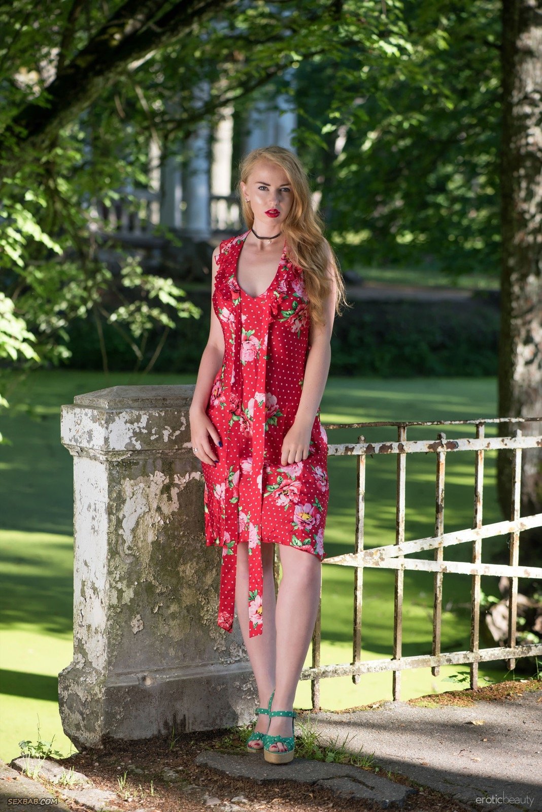 Описание: Симпатичная рыжая женщина всегда готовая на приключения встала сегодня утром пораньше и с фотографом отправилась в парк, где она стянула платье с нижним бельём и голая гуляет по аллеям, среди памятников архитектуры. Грудастая дамочка демонстрирует свою аппетитную попку и сладкую киску, кокетливо принимая самые разнообразные позы.