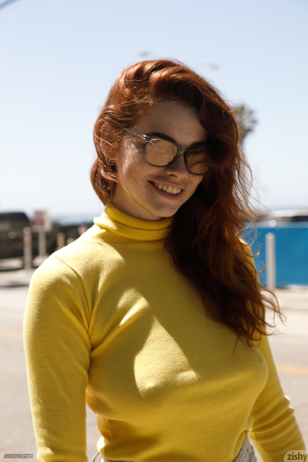 Описание: Прогуливаясь на улице и ощущая возбуждение, рыжая сексуальная студентка в очках и коротких джинсовых шортах старательно чередует разные позиции. В те моменты когда молодая девушка присаживалась на корточки и раздвигала промежность можно было рассмотреть упругие ляжки.