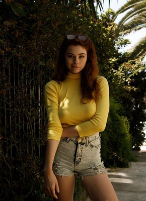 Рыжая сексуальная студентка в коротких шортах