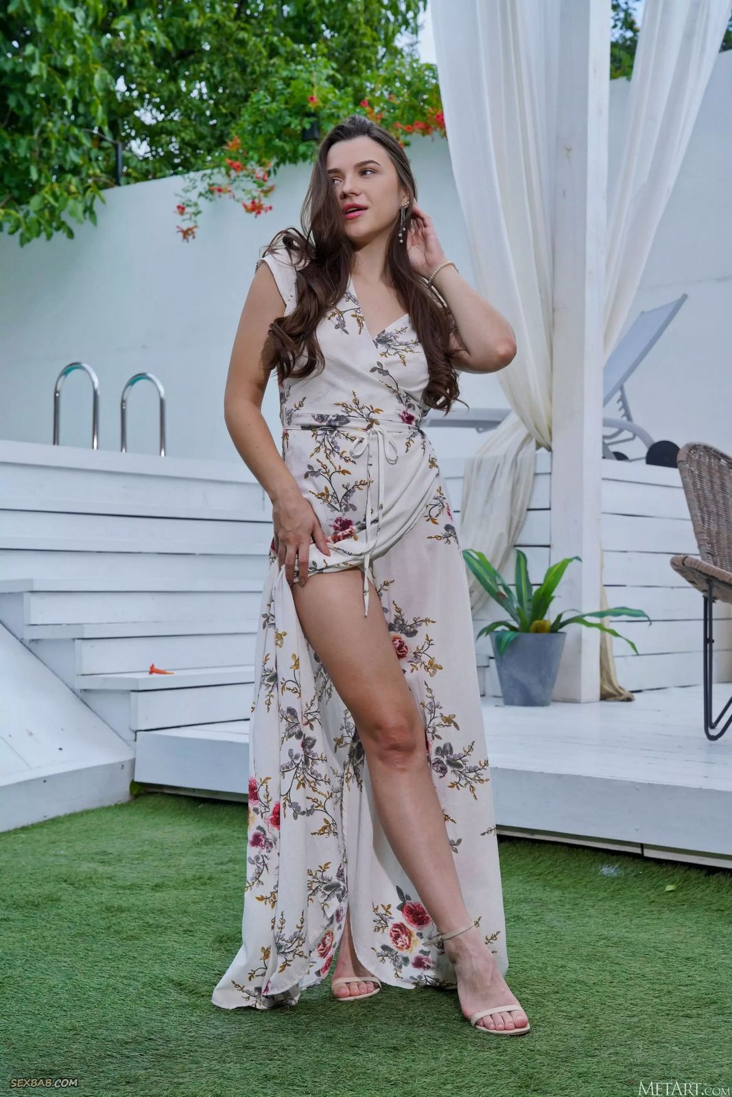 Описание: Страстно распахнув на себе платье и легко скинув его на землю, горячая дерзкая штучка с натуральными сиськами развратно извивается на газоне всем телом в самых откровенных позах и во всех подробностях хвастается перед камерой голой бритой киской у себя на даче.