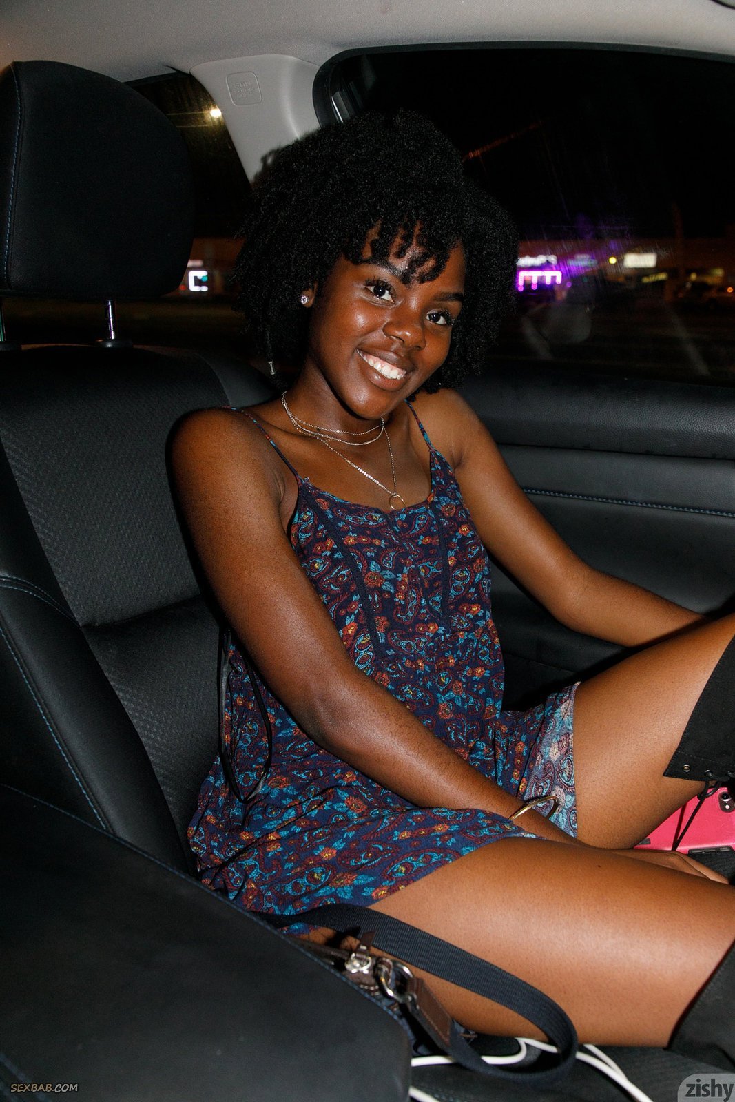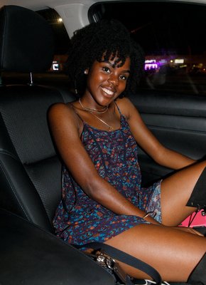 Описание: Симпатичная негритянка в коротком платье и трусиках гуляет тёплым вечером на улице, где она показала нам свою красивую упругую попку под юбкой, лихо задрав её подол. Испытывая от всего этого приятное возбуждение, чернокожая девушка забралась в машину и стянув нижнее бельё открывает нашему взору коричневую письку.
