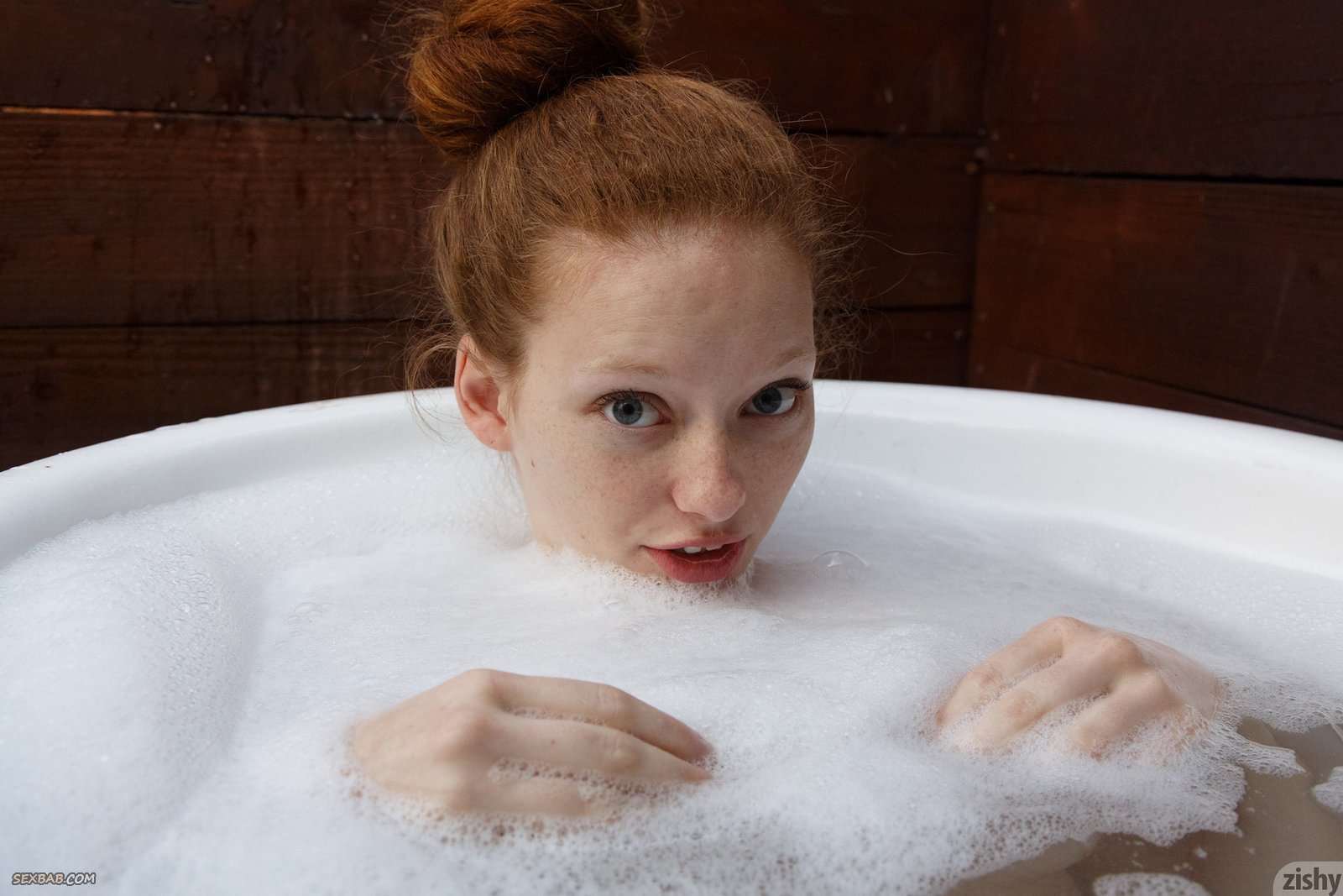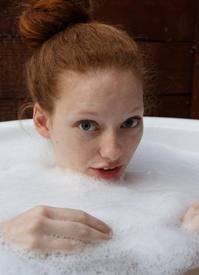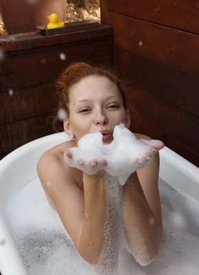 Описание: Не обременённая комплексами рыжая баба в очках и халатике позирует перед камерой, а раздевшись купается в пенной ванне, получая от этого процесса удовольствие. Таким образом сексуальная девушка с натуральными дойками делает акцент на гладко выбритой письке, порой сжимая доки руками, усиливая наслаждение.
