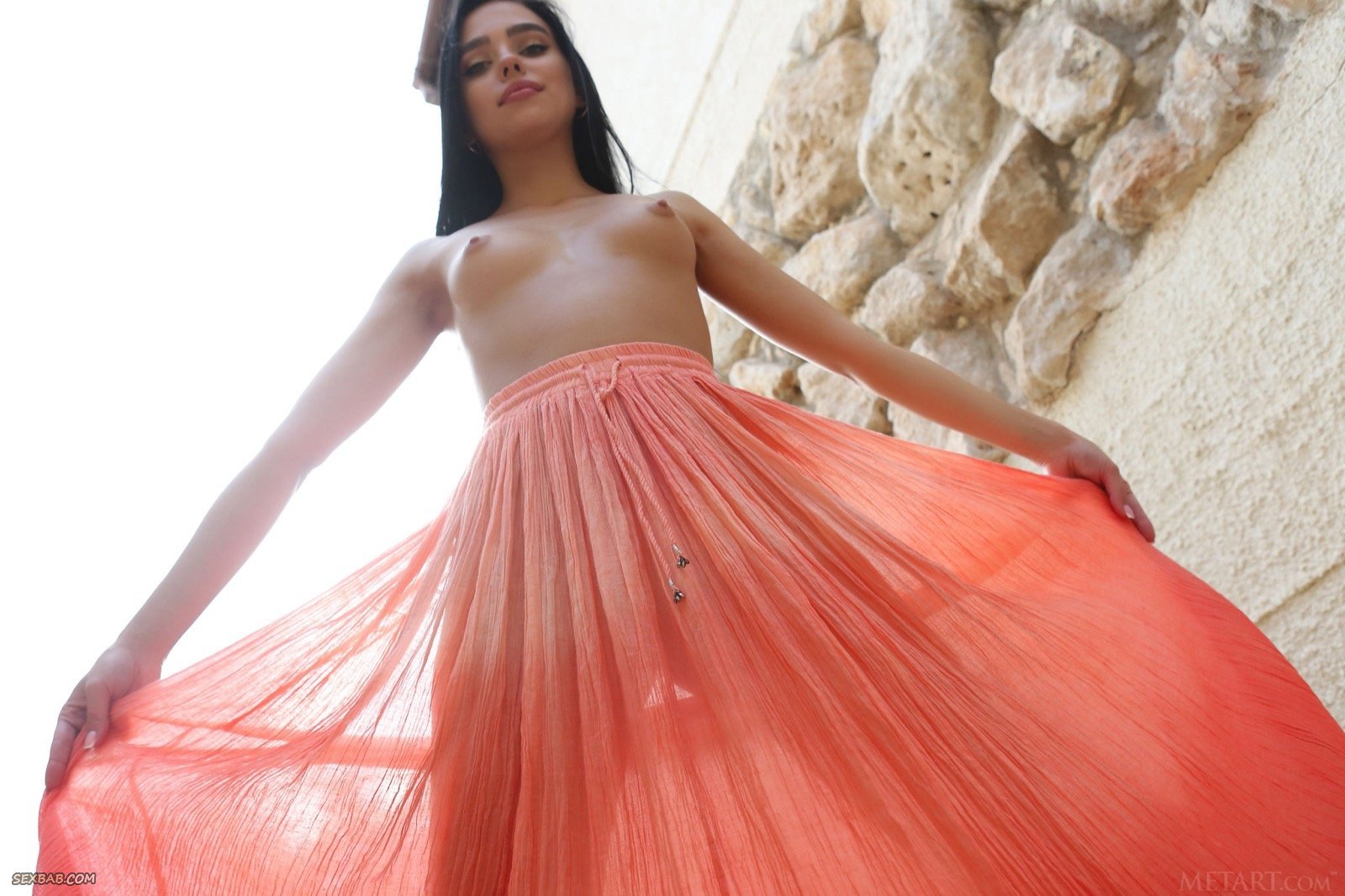 Милашка с маленькой грудью сняла юбку