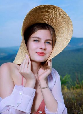 Описание: Кокетливо попозировав перед камерой в шляпке, молодая девушка постепенно снимает с себя купальник и выставляет на показ свое нежное тело на природе. Лежа на земле с широко раздвинутыми ножками, стройная милашка с аккуратными упругими сисечками засвечивает там бритую пиздёнку и приглашает любого желающего насладиться ее влажной узкой дырочкой.