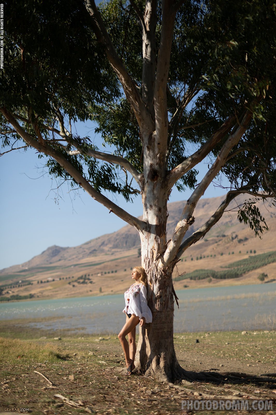 Описание: Одетая в свободную белую рубашку, сексуальная красотка эротично позирует без трусов у большого дерева на фоне природы. Раздевшись до гола, горячая блондинка с шикарным телом страстно изгибается в красивых позах, демонстрируя на камеру свои натуральные упругие сиськи и аппетитную подтянутую попку.