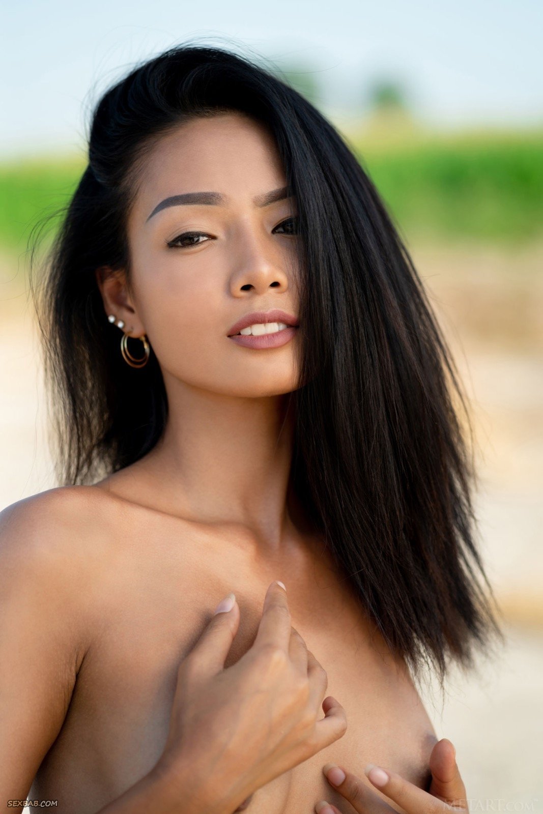 Описание: Уединившись на природе с фотографом, красивая молодая азиатка со стройной фигуркой эротично позирует в трусиках и легком халатике. В какой-то момент сексуальная девушка с маленькими сиськами все же скидывает с себя все лишнее и соблазнительней всего демонстрирует возбуждающую бритую письку с тощей попкой.