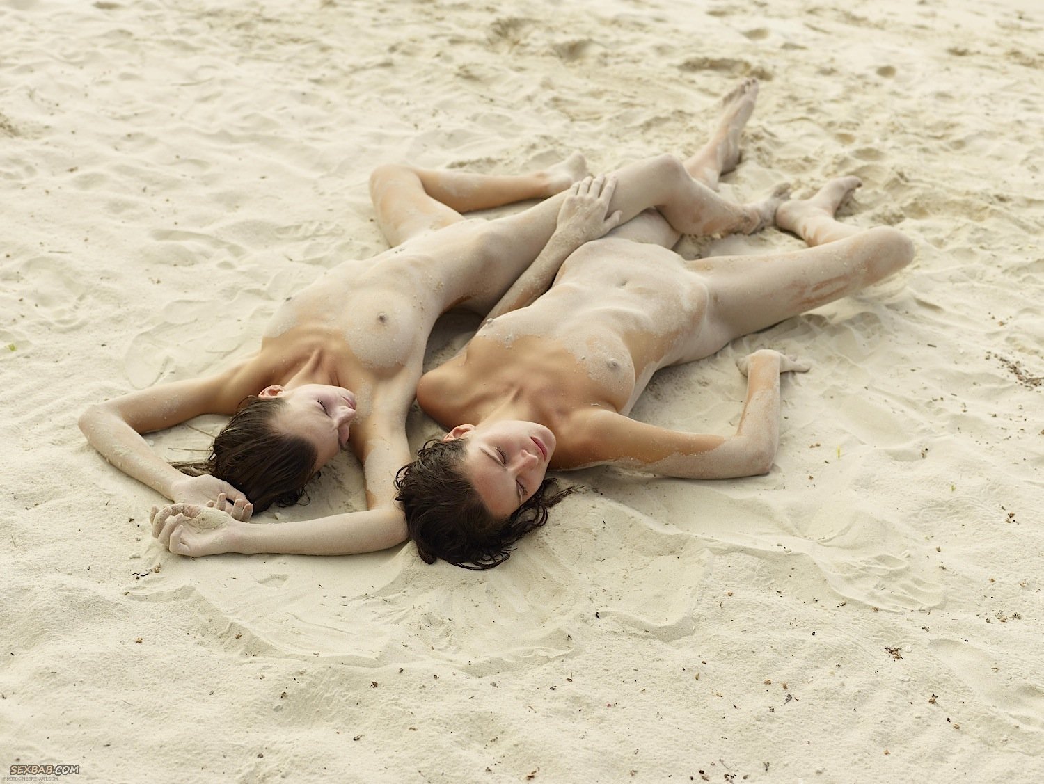 Описание: Обаятельные и совершенно голые подружки эротично позируют на пляже в песке и нежно прикасаются друг к дружке, обжимаются и дарят ласку. Кувыркаясь в разных позах, стройные красотки с натуральными сиськами чаще всего старались демонстрировать нам свои грязные от песка попки и бритые письки с гладкими лобками.