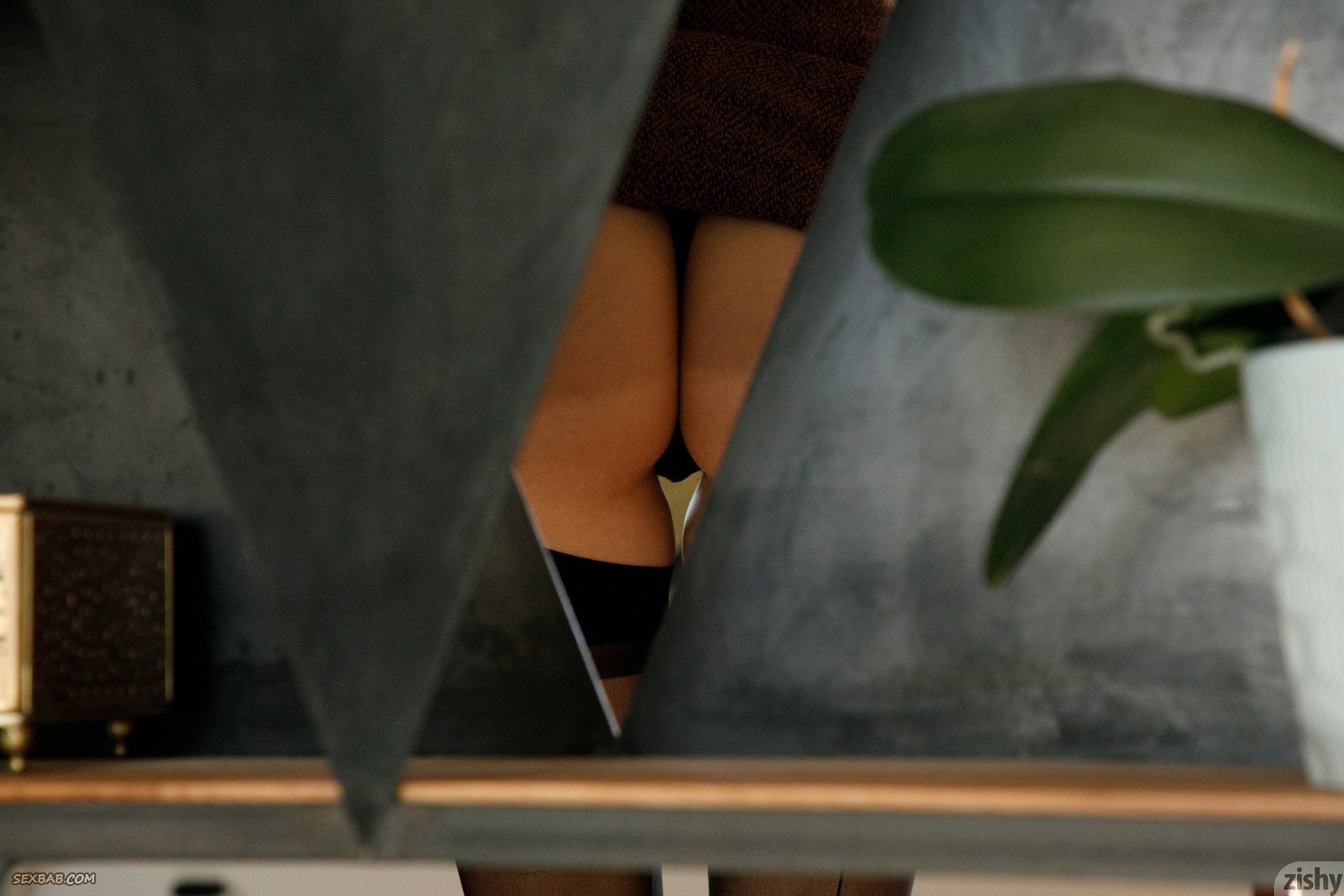 Шалава в чулках и короткой юбке с трусами