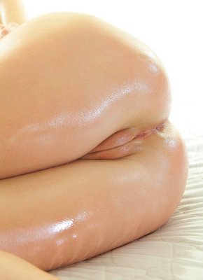 Девушка с голой попой и киской в масле