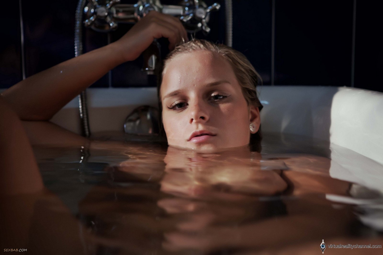 Описание: Выключив свет, голая блондинка с натуральными упругими сиськами расслабленно плещется в большой ванне, эротично позируя при этом перед камерой. Выставив на показ свое аппетитное мокрое тело, развратная баба начала чувственно ласкать рукой свою бритую письку и громко стонать от удовольствия.