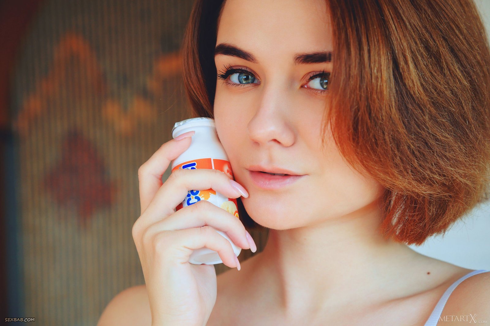 Описание: Только проснувшись, молодая рыжая красотка в желтом пеньюаре отправилась на кухню, где позавтракав принялась играться с бананом, для этого располагаясь на столе. Наслаждаясь происходящим худенькая девушка с маленькой грудью широко раздвигала промежность и засвечивала возбуждающую бритую письку с гладким лобком.