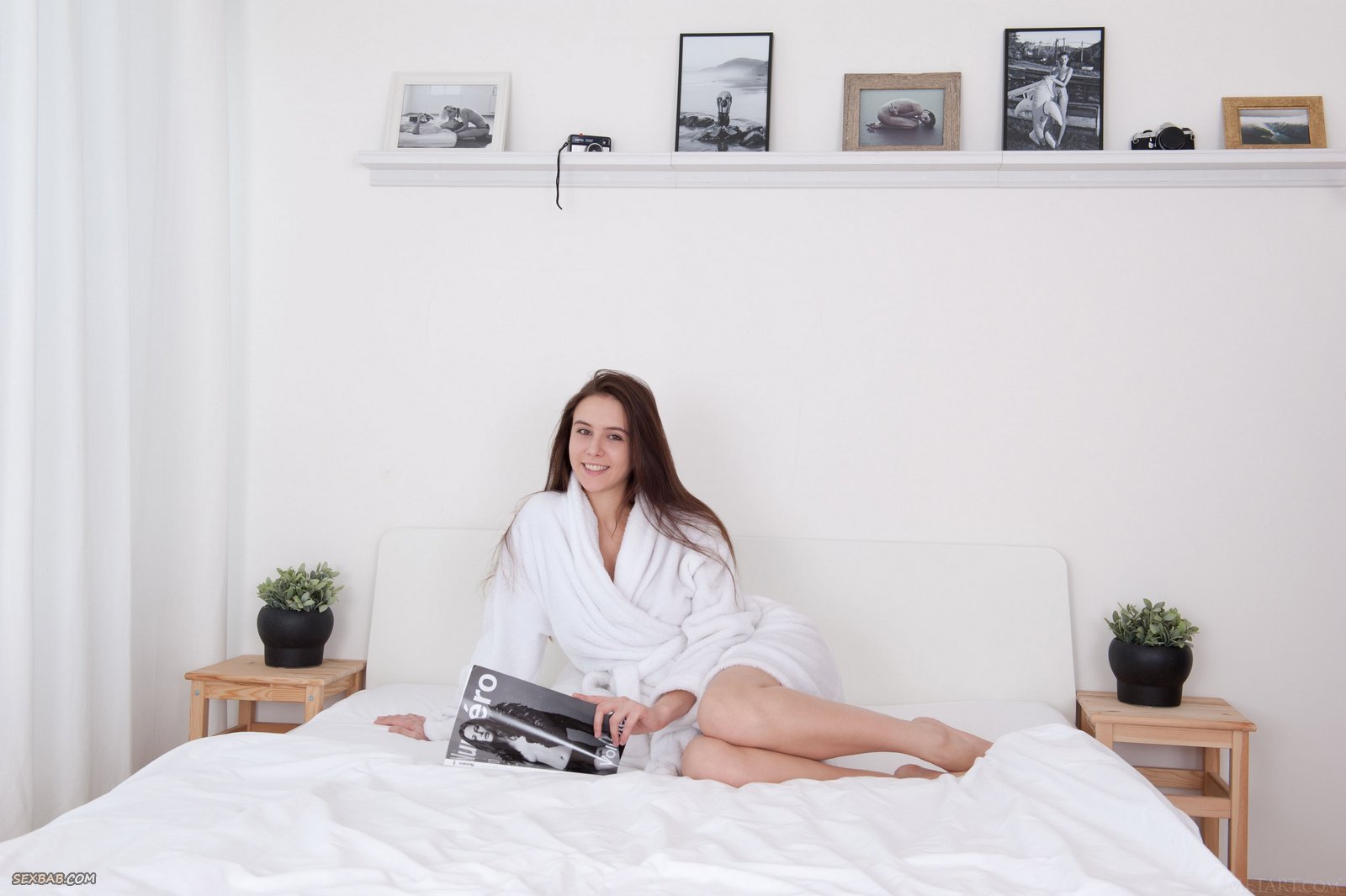Описание: В номере отеля молодая брюнетка медленно сняла с себя махровый халат в большой постели и принялась эротично позировать на камеру. Красивая детка возбуждающе потягивается всем стройным сексуальным телом, выставляя на показ свою шикарную фигуру с большими упругими сиськами.