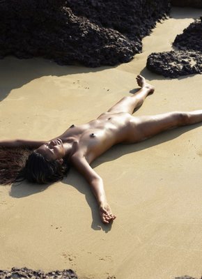 Описание: Оказавшись на пляже, очаровательная сексуальная мулатка в очках ложится на песок и начинает эротично позировать, чередуя разные позиции. Ощущая приятное возбуждение ниже пояса, красотка не может больше скрывать своих желаний, что хорошо видно по торчащим соскам на упругой груди, а так же вызывающим позам модели.