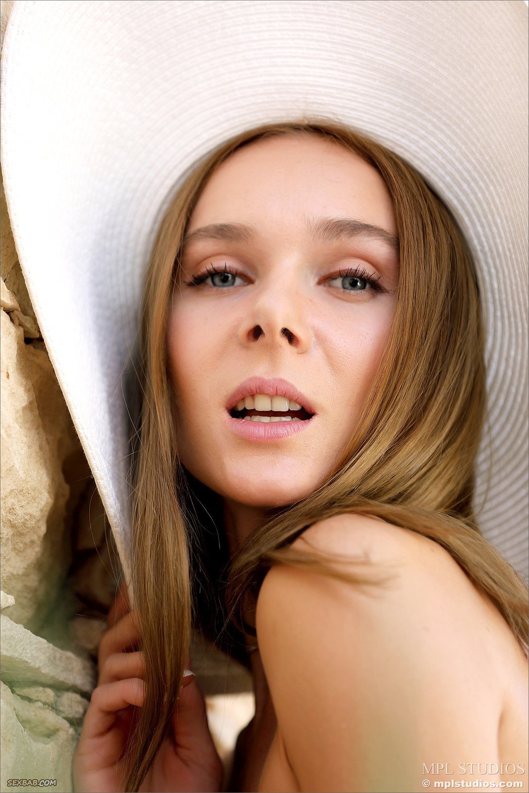 Голая худышка в шляпке