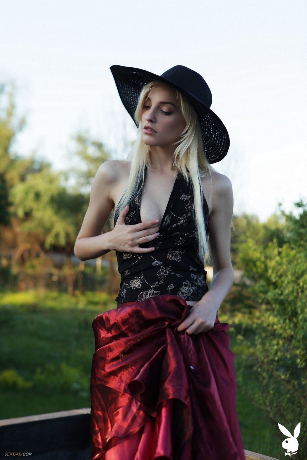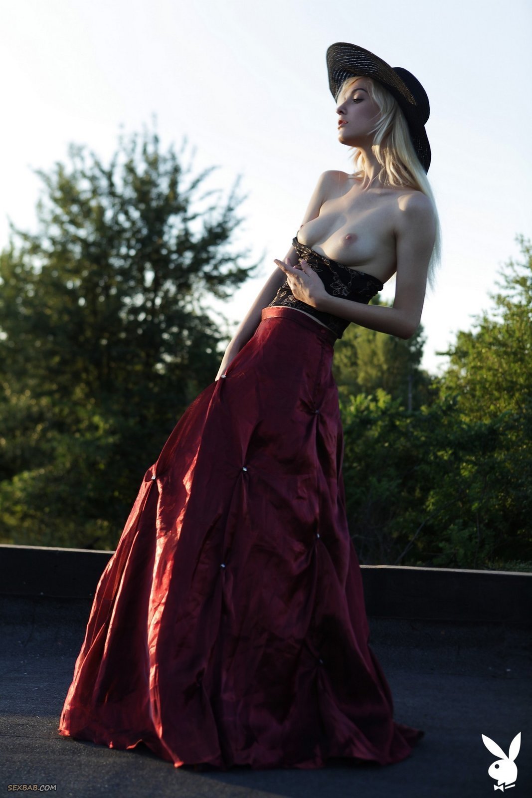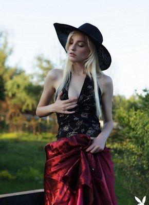 Описание: Нарядившись в необычный наряд, светловолосая украинка с пронзительным взглядом устраивает на крыше эротичную фото сессию от студии PlayBoy. Возбуждаясь от позирования, сексуальная девушка в процессе медленно раздевается и немного засвечивает маленькие сиськи и гладкий лобок.