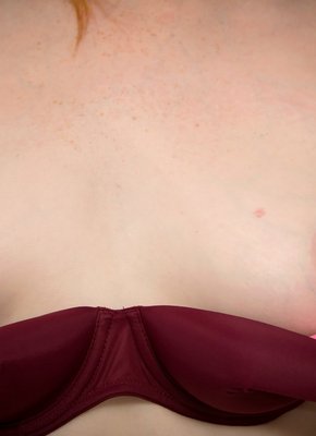 Описание: Сидя на кровати, рыжая баба с милой внешностью и весьма сочной жопой и маленькими сиськами принимается эротично позировать и медленно снимать бардовое нижнее белье. Лишившись трусиков и лифчика, сексуальная красотка сразу же раздвигает ноги, параллельно сжимая грудь руками, и акцентирует внимание на бритой письке с волосиками на лобке.