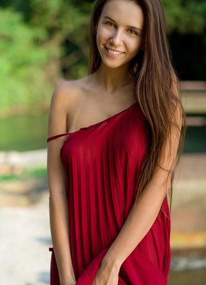 Описание: Отыскав живописную полянку для фото сессии, сексуальная милашка с натуральными дойками обольстительно кривляется перед камерой, а спустя пару мгновений, она уже сняла с себя длинное платье. Оказавшись же совершенно голой, стройная красавица во всей красе позволила нам взглянуть на гладкую письку и весьма упругую попку.