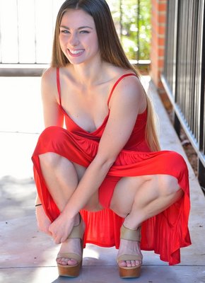 Описание: Выбрав самый безлюдный закуток на улице, длинноволосая девушка в красном платье сняла розовые трусы, а затем эротично позирует перед камерой, открывая соблазнительную промежность между ног. А присаживаясь на корточки и раздвигая ножки молодая красотка с маленькой грудью максимально подробно демонстрировала возбуждающую щелку.