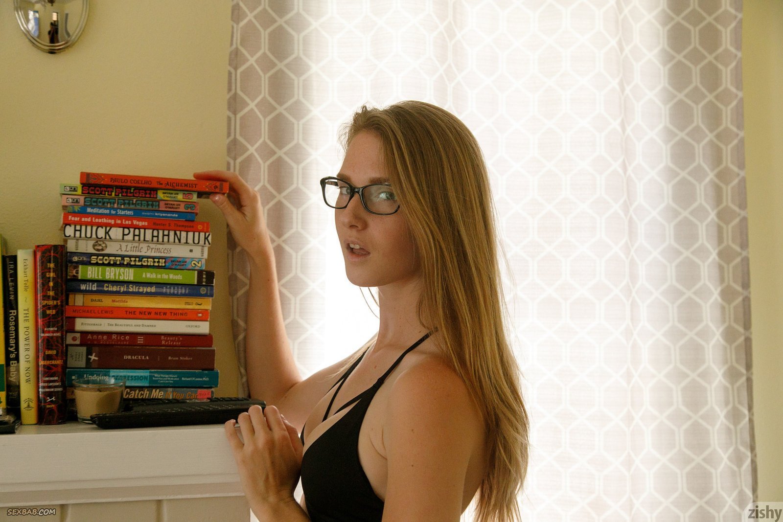 Описание: Игриво снимая с себя нижнее белье, скромная детка неумело и зажато позирует голышом перед камерой на большом диване. Очкастая милашка смешно кривляется и стеснительно прикрывает свое обнаженное стройное тело руками, но все равно умудряется засветить свои маленькие упругие титечки и мягкую попку.