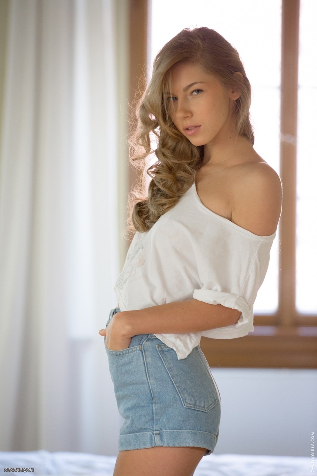 Описание: Находясь в спальне, стройная милашка начала эротично позировать и медленно раздеваться, снимая короткие шорты с майкой и трусики. В будущем сексуальная девушка в кроссовках ложится на кровать и подробно показывает маленькие сиськи с возбуждающей бритой писькой.