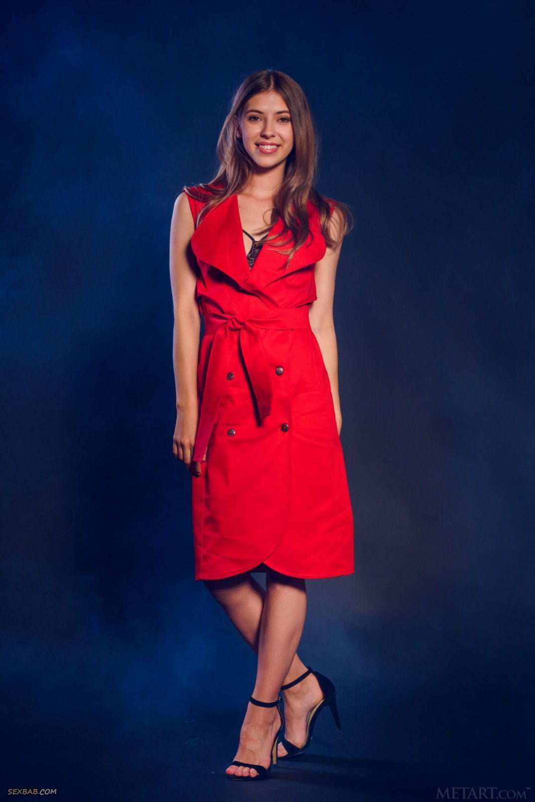 Описание: Молодая красотка сняла в фото студии красный плащ и сексуальное нижнее белье с кружевами, после чего совершенно голая она позирует и мило улыбается перед фотографом чередуя разные позы. Вскоре после начала съёмки стройная девушка продемонстрировала своё тело со всех сторон, особенно делая акцент на маленькой торчащей груди и гладенькой письке, так же не забывая поворачиваться попкой, все это время трогая себя руками.