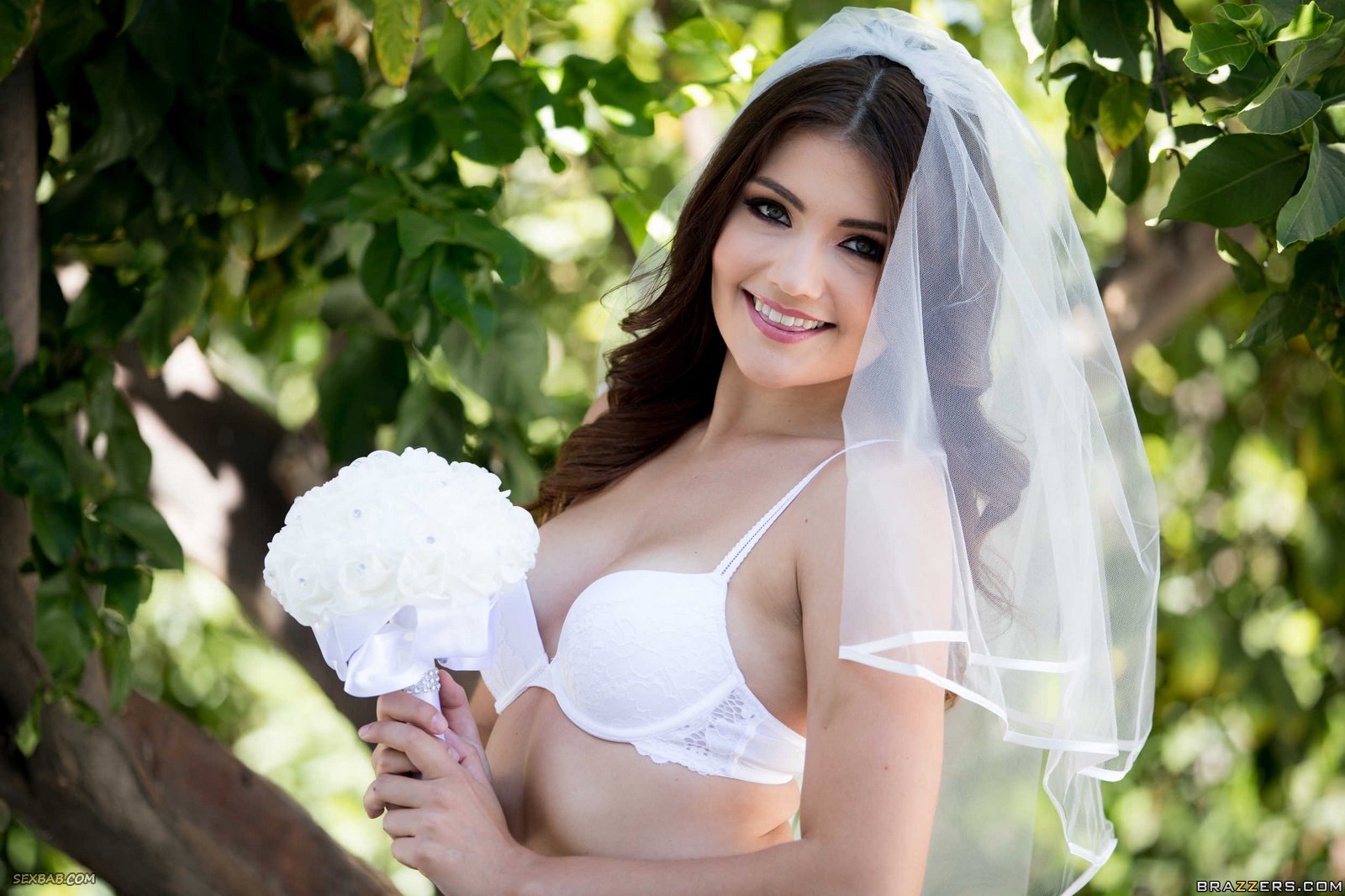 Описание: Захотев необычную свадебную фото-сессию и избавившись от платья, развратная невеста в чулках разделать до гола на камеру, иногда стеснительно прикрываясь руками. Красивая обнаженная брюнетка с маленькими сиськами страстно смотрит прямо в камеру, представляя свою брачную ночь, и смело показывает бритую голую пизду.
