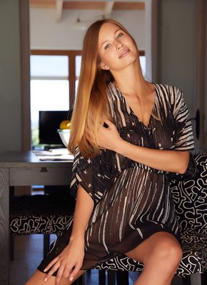 Описание: Находясь дома, высокая девушка с длинными волосами, игриво строя глазки, позирует и медленно скидывает с себя летнее платье. Так как под ним не оказалось нижнего белья, сексуальная милашка сразу же продемонстрировала достаточно крупные натуральные буфера и гладенькую письку с попочкой.