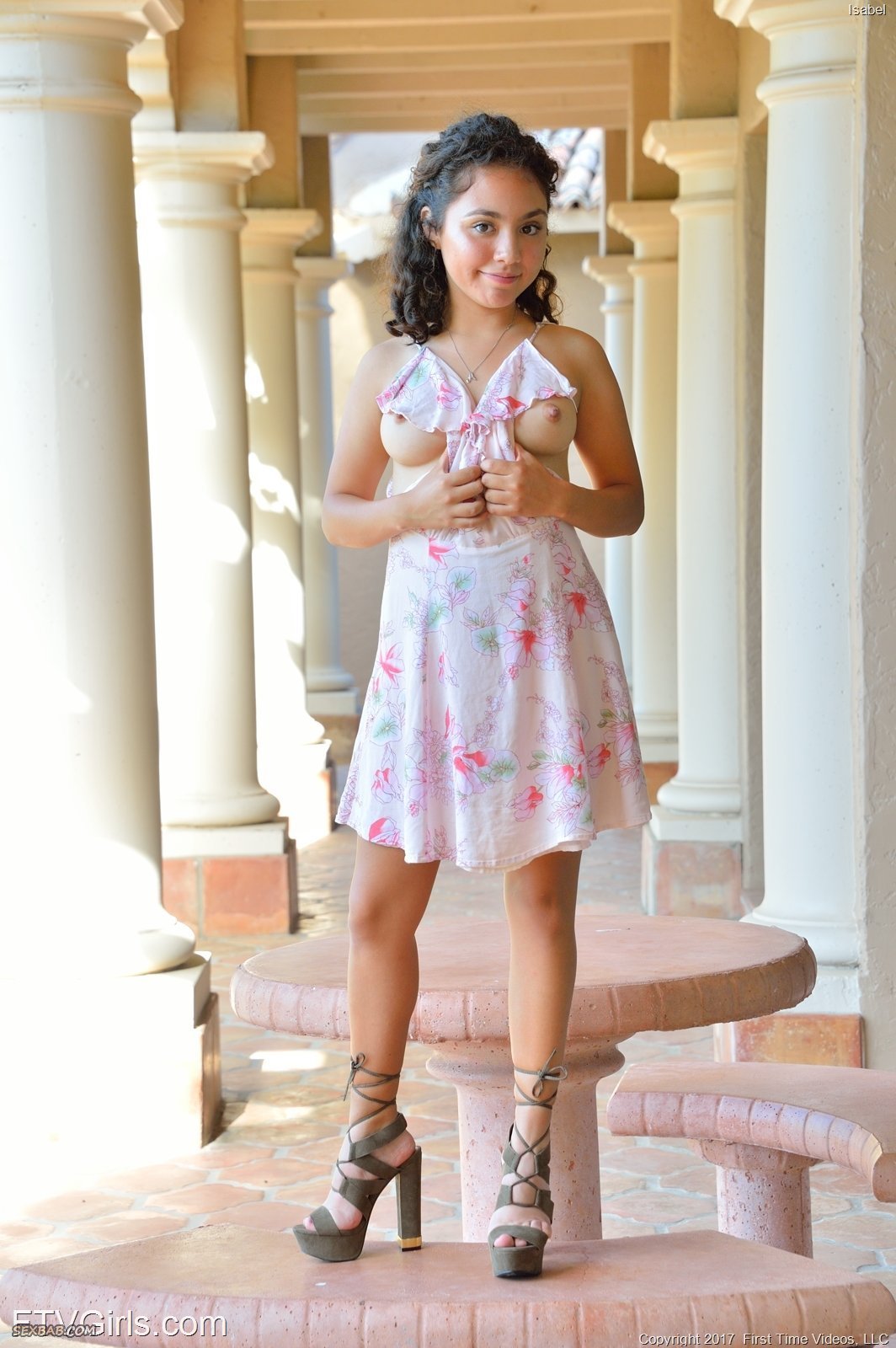 Описание: Симпатичная и достаточно сексуальная кудрявая девушка со стройной фигурой, прогуливаясь на улице в платье без нижнего белья, начинает эротично позировать и медленно оголятся. Уже через несколько минут очаровательная крошка с милой улыбкой и упругими натуральными сиськами демонстрирует бритую письку и возбуждающие розовые половые губки, в процессе раздвигая их пальчиками.