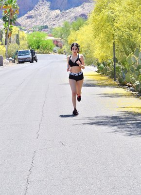 Описание: После продолжительной пробежки на улице, молоденькая девица в коротеньких шортиках и с сексуальной крупной грудью, найдя подходящее местечко, начинает медленно и максимально возбуждающе снимать топик, при этом строя глазки и мило улыбаясь. Уже через несколько минут очаровательная крошка засвечивает привлекательные сосочки, параллельно страстно сжимая сиськи руками.