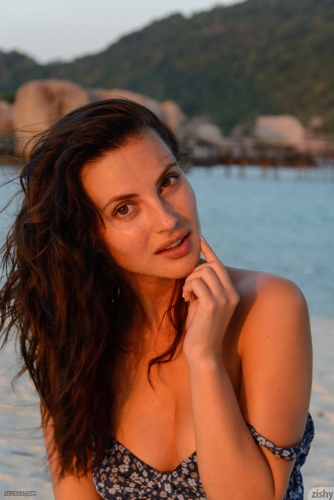 Описание: Начав позировать в платье и очках, сексапильная девушка возбуждающе приоткрывала ротик, а переодевшись в купальник отправилась на пляж, где продолжая начатое нежилась в воде. В процессе очаровательная крошка чередует разные позиции, а под конец полностью оголяется, засвечивая маленькие сиськи с волосатой писькой.