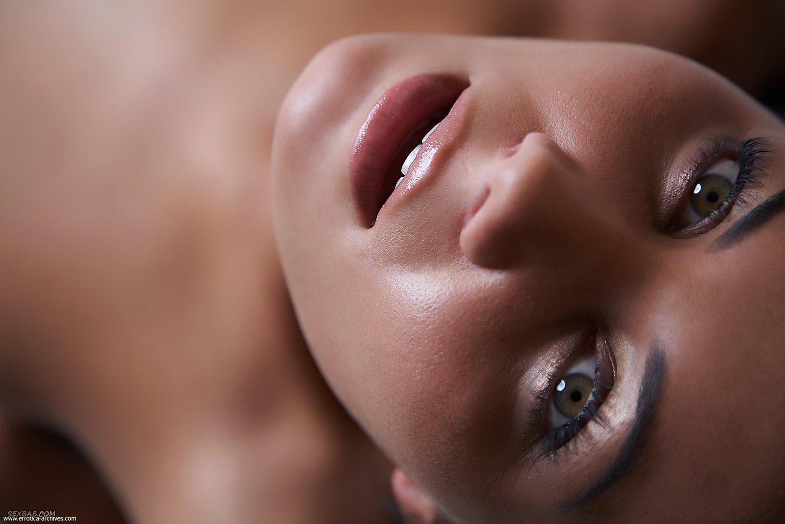 Загорелая брюнетка с красивой внешностью в постели