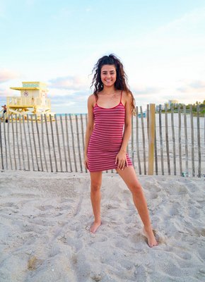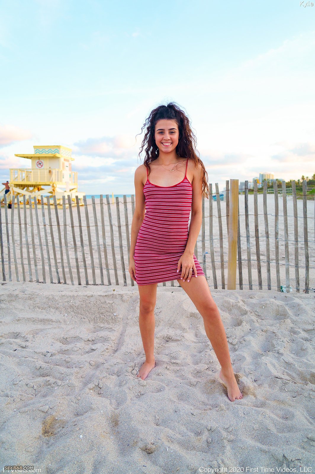 Девица с упругой жопой гуляет по пляжу в платье