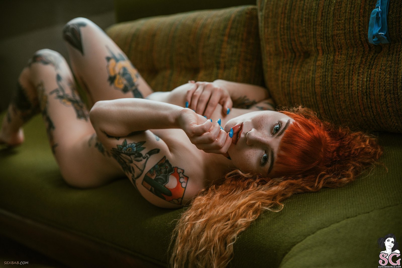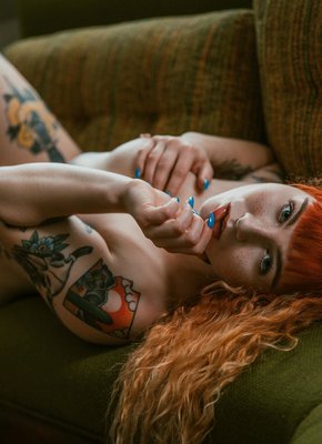 Описание: Возбуждающе позируя на диване у себя дома, развратная и довольно красивая рыженькая шлюшка лишается нижнего белья и засвечивает сексуальное тело с татуировками. Чаще всего красотка поворачивалась бритой писькой, а порой подкаченной попочкой, одновременно с этим поглаживая маленькие сиськи руками.