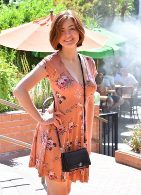 Шатенка снимает платье и демонстрирует упругие сиськи