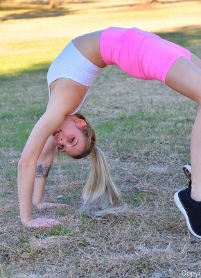 Описание: Очаровательная худая девка в розовых спортивных шортах и белом топике игриво позирует на прогулке и решив добавить жара, немного оголяется перед фотокамерой. Таким образом сексуальная стройняшка продемонстрировала в процессе плоские сиськи с торчащими сосочками и тощую попку с бритой писькой.